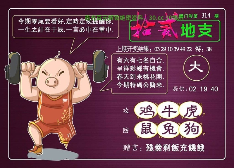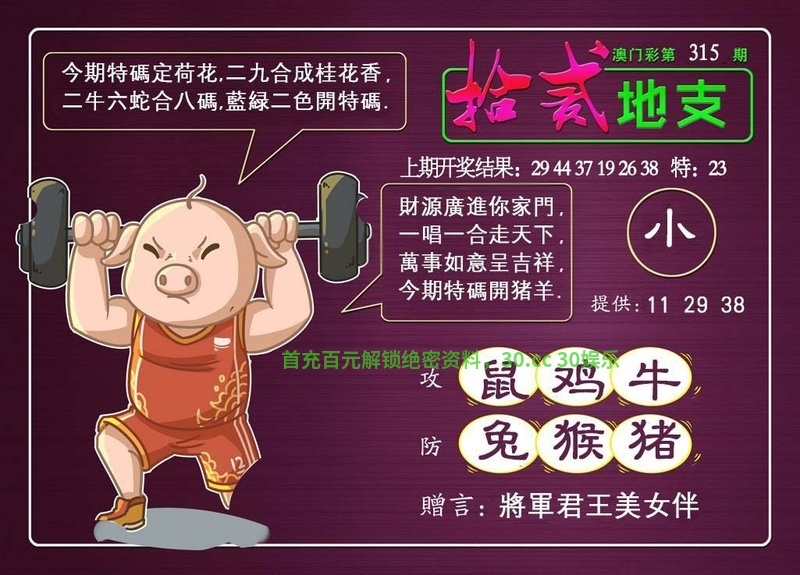 第318期:吉凶主四肖八码开(發00)准 凶丑【猴鼠猪牛】 10.34.06.30.31.43.17.29 |